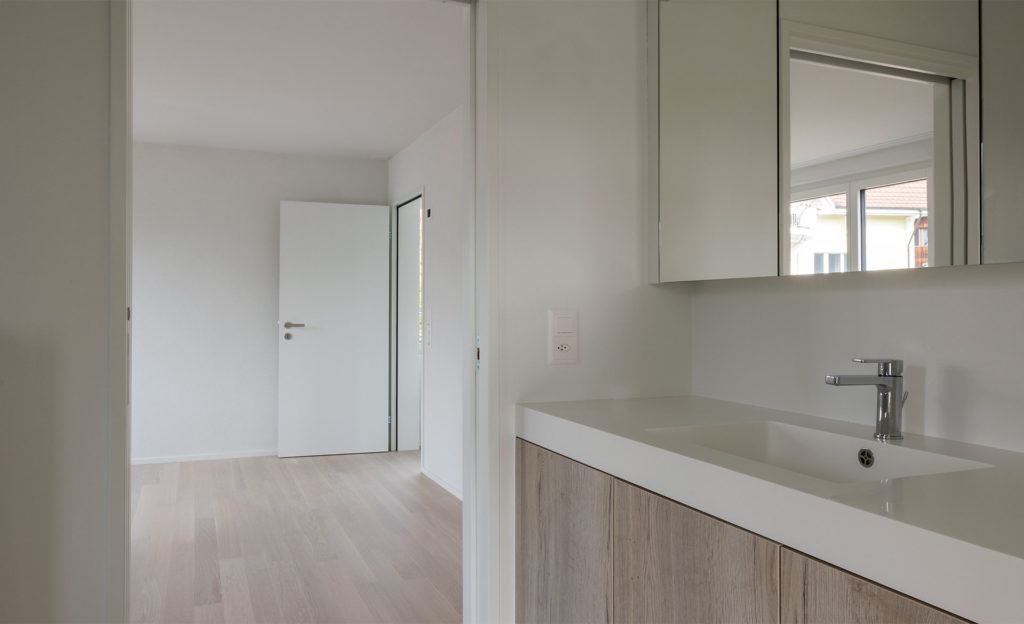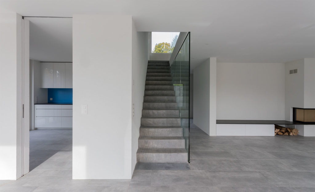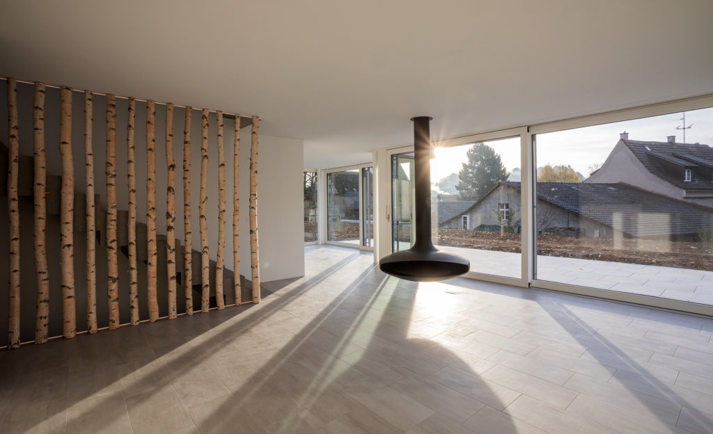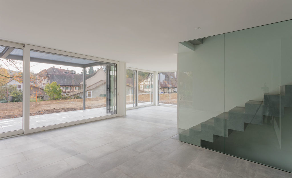 Im EG öffnen sich die Häuser maximal zum Garten hin. Offene, trotzdem klar strukturierte Grundrisse vermeiden reine Erschliessungsflächen, und versuchen diese notwendigen Flächen multifunktional einzubinden.